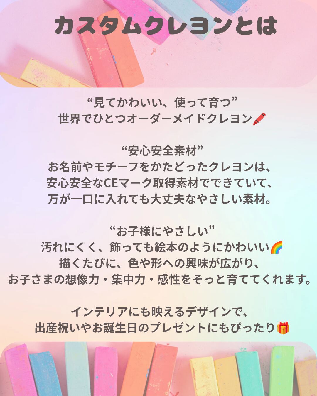 ※モチーフクレヨンや色の選定の参考にさせて頂きたいので、男の子or女の子の入力を備考欄にお願い致します(任意)